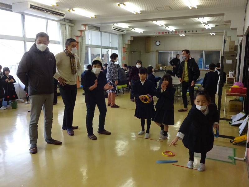 6年生が春の交流会を開催し、地域の人と一緒に色々な遊びを楽しみました。1年生も混ぜてもらいなかよしルーム内に笑い声が響き渡りました。新しい輪投げは、投げても弾んでしまって入らないことがあり、大人も子どもも盛り上がっていました。6年生の皆さん、素敵な交流会をありがとうございました。