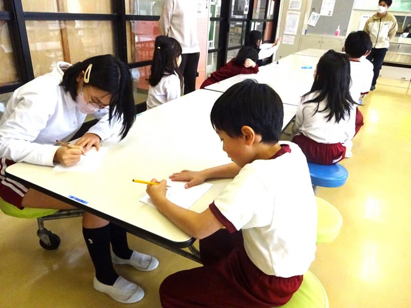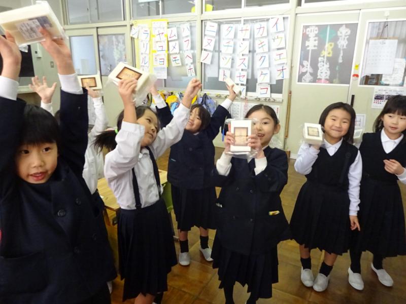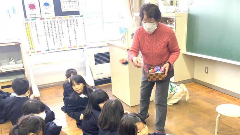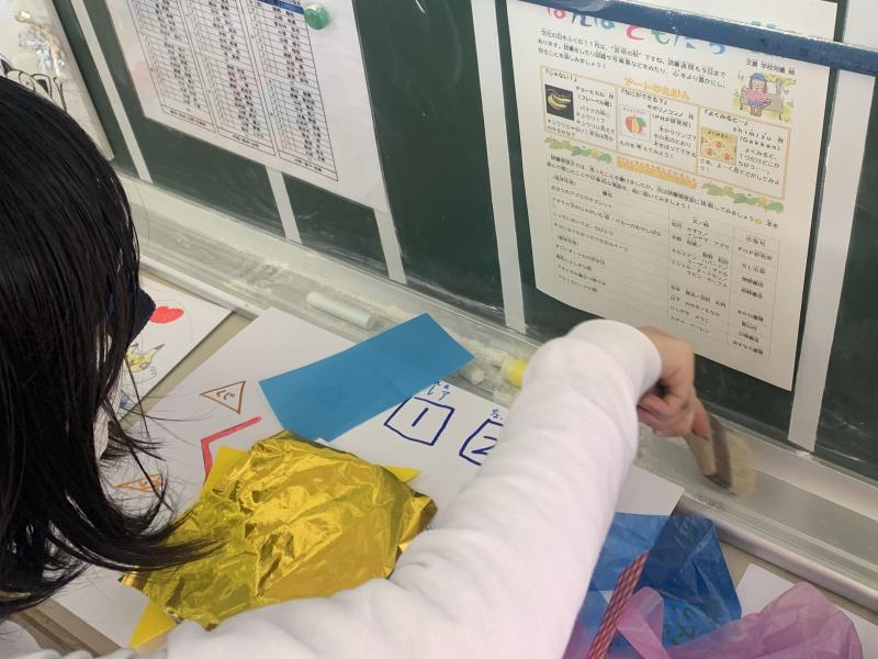 2学期ももうすぐ終わりですが、学校では、昨日と本日、楽しいことをやりました。「宝さがし」と「お絵描き伝言ゲーム」です。「宝さがし」は、部屋のあちらこちらに隠したお宝(カラーボール)をさがすというもの。子供達は本当にうまく見つけます。見つけた子は満面の笑顔です。そして「お絵描き伝言ゲーム」。4人一組で、1番の子がお題(「りんご」「きゅうり」等)を聞き、それを制限時間内に絵に描きます。その絵を2番目の子にパッとだけ見せます。2番目の子は、それをまねて描き、3番目の子にパッと見せます。3番目の子も、まねて描き、4番目の子に見せます。4番目の子は、その絵からお題を当てるのですが、なかなか当たりません。だから、盛り上がりました!こちらも皆満面の笑顔です。ゲーム後は、全国からプレゼントされたクリスマスカードをもらいました。こちらも満面の笑顔になりました。