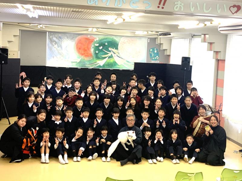 本日、文楽(人形浄瑠璃文楽)を鑑賞することが出来ました。上演前には、校内を賑やかに練り歩き、もうすぐ始まることを子供達に伝えていただきました。和太鼓の見事な演奏からスタートし、しの笛や歌に合わせた人形の動きに見とれる素晴らしい時間を過ごしました。また、お昼には、これまで児童にジェラートをプレゼントするために、奔走して下さった方々が、児童のお礼の手紙にとても感動し、是非児童達に実際に会いたいと来校されました。直っ子は、とにかく元気で明るいと、皆さん言って下さいました。