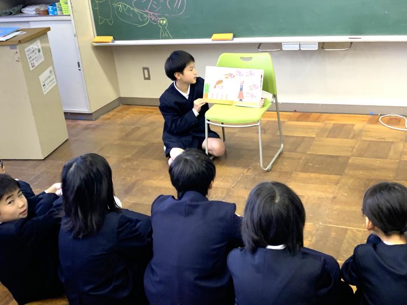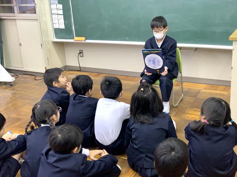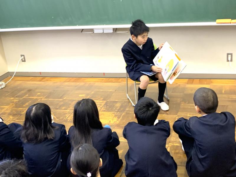 今日の読み聞かせは、図書委員の児童が行ってくれました。それぞれ、図書室での本選びからはじめてくれています。真剣な語り口に、聞く側も一生懸命でした。本の魅力、沢山伝わったことと思います。次回も楽しみです。