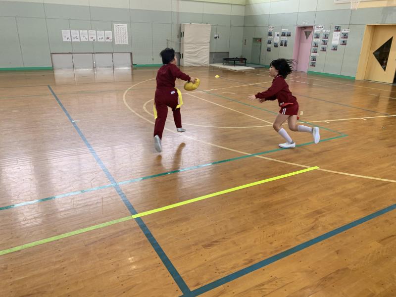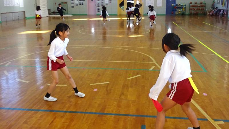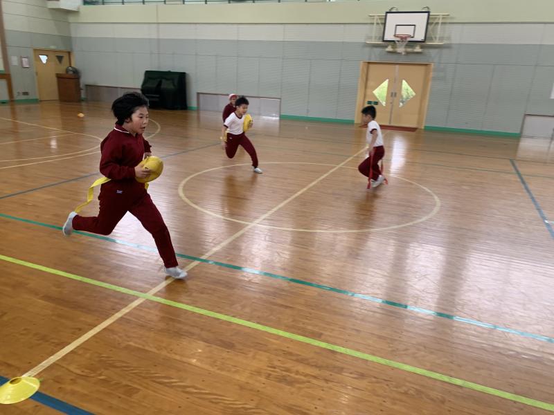 今日はとても寒い日でしたが、子供達は、とっても元気でした。4年生の体育では、タグラグビーをしていました。タックルするのではなく、相手の腰のひも(タグ)を取ることで、相手の動きをとめることが出来るルールです。寒さを吹き飛ばすようないい動きでした。次の時間も、きっと白熱することでしょう。