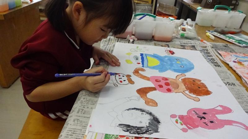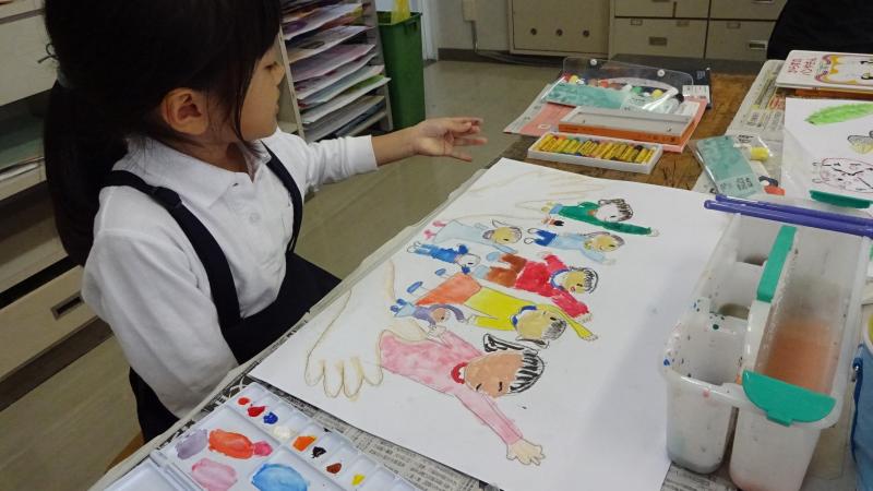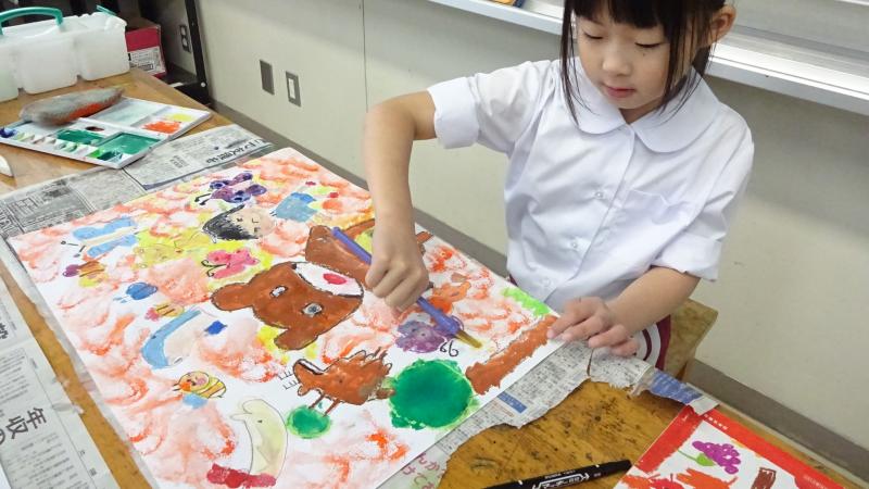 1年生が読書感想画に取り組んでいます。心に残った場面を描いています。カラフルな色使いがとても楽しいです。本を読んできっと沢山ワクワクしたのでしょうね。生き生きした表情で描く姿が印象的でした。