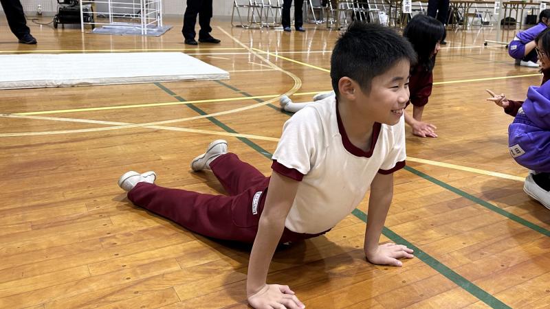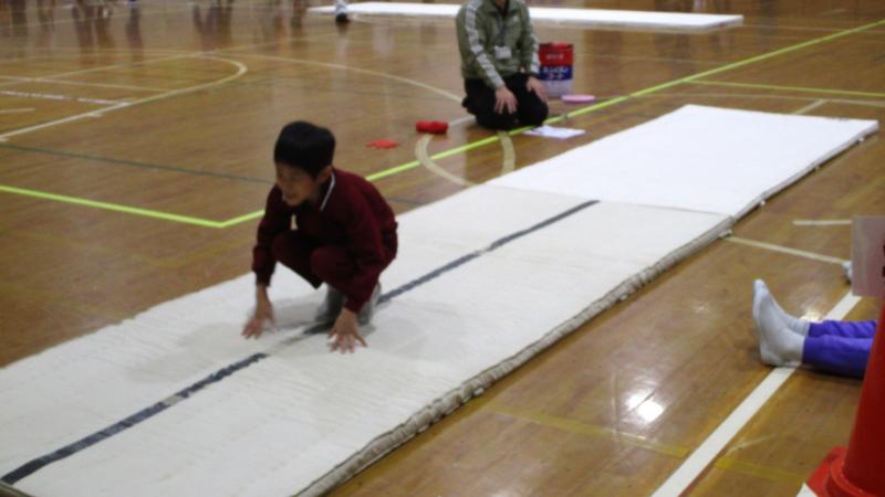 本日は、市内すべての4年生が集まって、器械運動交歓会がありました。マット運動を行いました。各校で練習してきた「前転ー開脚前転-後転」の連続技を披露したり、発展技(「開脚後転」「側転」等)にチャレンジしたりしました。他校の児童とグループになっていて、良き刺激になったようです。ふれあうための集団ゲームもあって、盛り上がりました。これまでの練習の成果を発揮するとともに、他校との絆も深まった1日となりました。