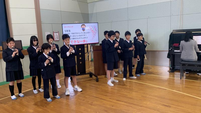 本日の児童集会で、5年生が歌の発表をしました。曲名は「すてきな一歩」。歌詞もじーんと来ますし、二部合唱もすごく綺麗でした。オープニングで得意のリコーダーも披露してくれました。素敵な歌に素敵な感想も沢山ありました。絆が一層深まった集会でした。