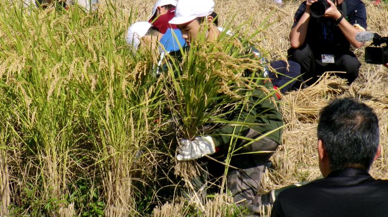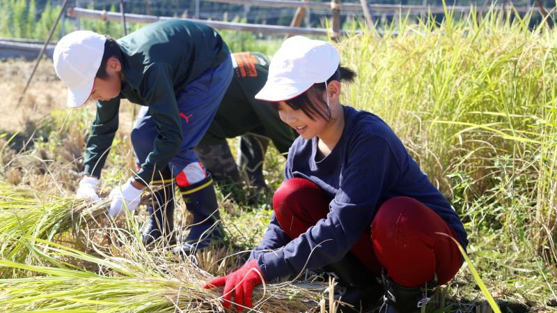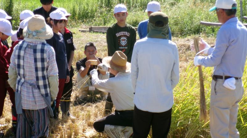 本日、5・6年生が稲刈り体験を行いました。天候にも恵まれ、格好の稲刈り日和!6年生は昨年も体験済みなので、流石の鎌さばきでした。5年生も大変上手に稲を刈っていました。ただ、刈った稲を縛るのはなかなかに難しかったようです。それでも何とか「はざかけ」まで無事終えることが出来ました。お世話いただいた「きずな」様、JAのと様、直公民館様、急遽駆けつけて下さったPTA会長様、本当にありがとうございました。