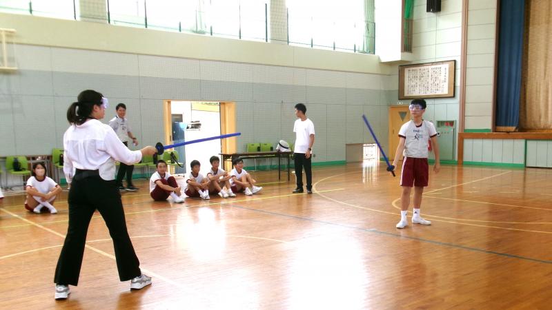 トップアスリートの方が来られました。本校へはフェンシングのスペシャリストでした。自らの体験談を語って下さり、素晴らしい実技も指導して下さいました。授業参観では子供達の元気な姿をお見せすることが出来ました。学習会では非行被害防止講座と震災時対応講座がありました。子供達にとっても良き学びとなったと思います。お世話いただいた方々、本当にありがとうございました。