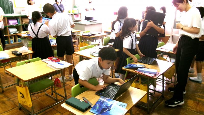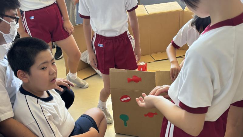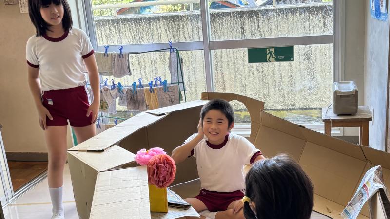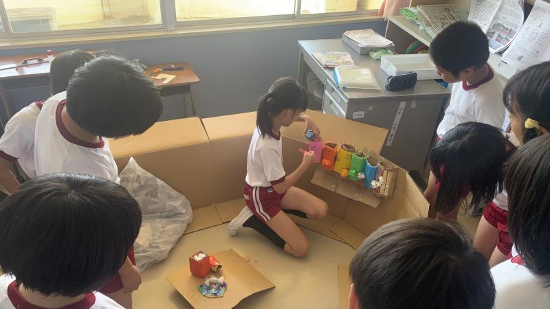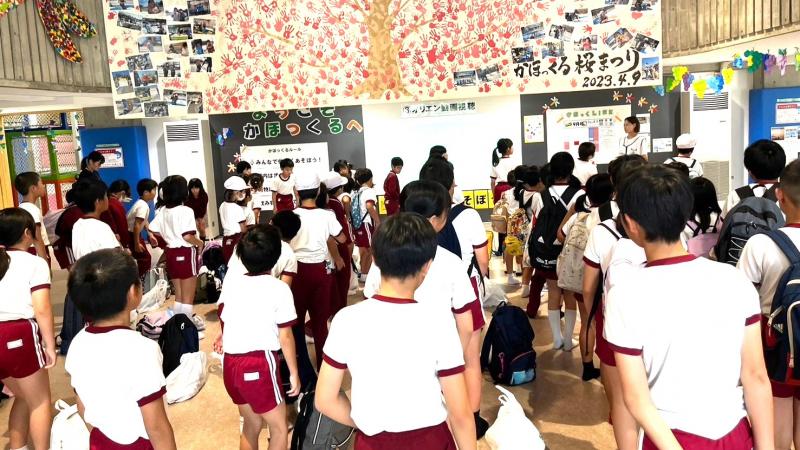 本日、4年生が特別支援学校と交流授業をしました。いっしょに段ボールハウスをつくりました。とても楽しい時間になりました。また、給食の時に、ご寄付いただいた図書カードで購入した図書の紹介を行いました。この図書カードは、ご寄付いただいた方が、何年もかけて新聞に記事等を投稿し、その謝礼としていただいた図書カードをためたものです。子供達にはその思いを踏まえて、購入した図書をどんどん読んでほしいと思います。昼休みには、5年生が考えた全校遊び、「けいどろ」で楽しんでいました。夕方には、地区のお祭りで太鼓の発表がありました。元気をいただきました。