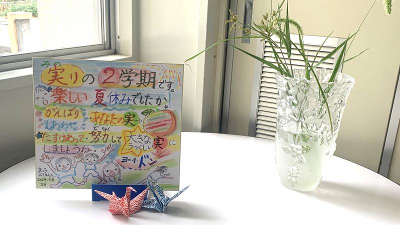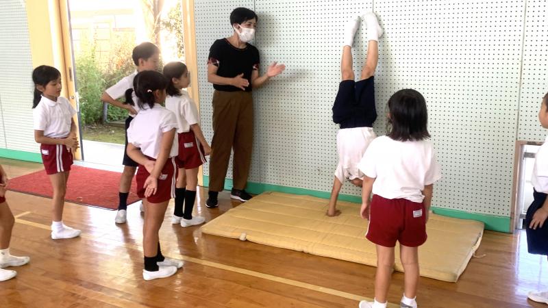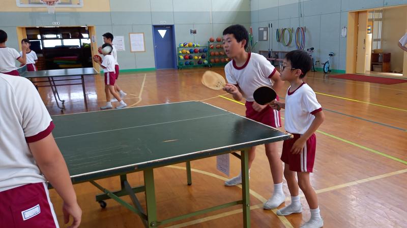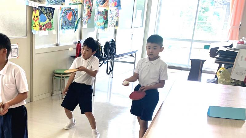 まだまだ残暑厳しき折ですが、休み時間、子供達は元気一杯!卓球ラケットでピン球をコンコンしたり、ミニトランポリンでジャンプしたり、体育の時間にやった壁倒立にチャレンジしたりと、もう時間いっぱい動き回り、まるでシャワーを浴びたかのように汗をかく姿も見られます。元気で遊べる。素晴らしいですね。