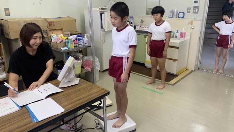2学期のはじめに、身長・体重をはかっています。子供達は「前回(1学期 4月)と比べてどれくらい変わったかな」と結果に興味津々です。体だけでなく、心の成長も沢山あるはず。2学期に、それもいっぱい見せてほしいと思います。