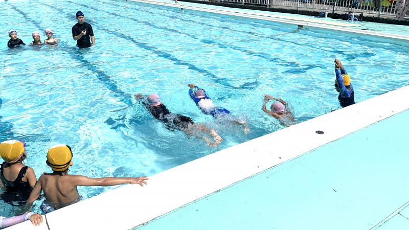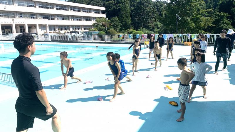本日、1~3年生は、水泳学習がありました。天候に恵まれ、とても気持ちのいい1日でした。準備運動から子供達はテンション高く、大張り切り。その後も水を思い切り蹴ったり、水の中を顔をつけて進んだりと、とても頑張っていました。これで今年の水泳学習は終了ですが、来年も元気に泳いでほしいと思います。
