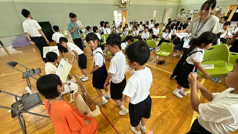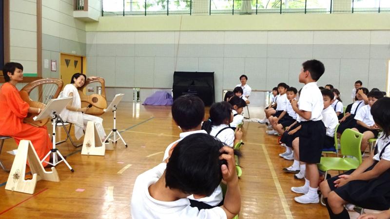 本日、児童集会では、保健委員会による「歯の集会」が行われました。ミニ劇あり、クイズありと、とても内容が工夫されており、そのお蔭で、子供達は、歯について沢山学ぶことが出来ました。また、ライア(竪琴)によるコンサートも開かれました。綺麗な音色に、全身が癒されたようです。ライアーの音出しも経験させていただきました。ありがとうございました。