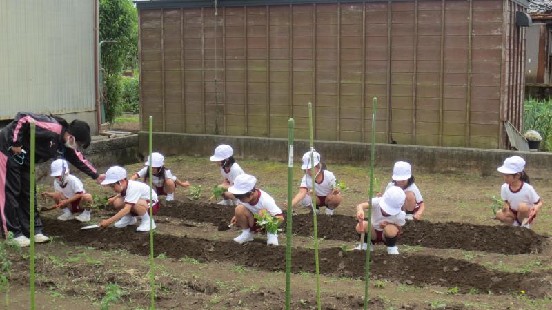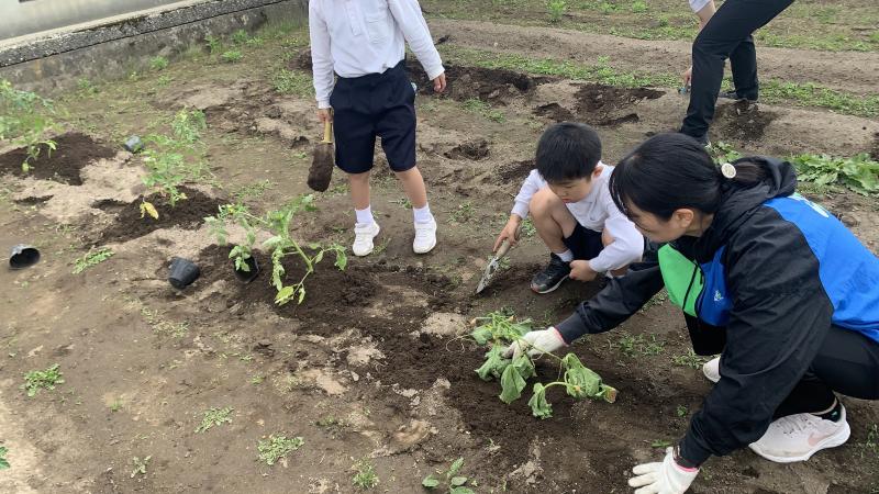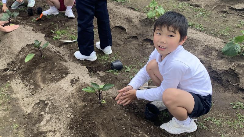 2024年6月4日 19時27分地域(熊谷)の方から、野菜苗をいただきました。早速、本校の畑に植えさせていただきました。子供達は大喜び。愛おしそうに、1本1本、丁寧に植えていました。地域の方が、これまで丹精してお世話して下さった苗です。皆で協力して、しっかり育てていってほしいと思います。
