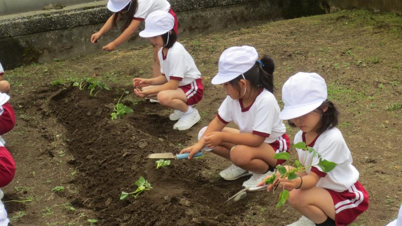 2024年6月10日 13時22分1年生で、畑にサツマイモの苗を植えました。毎年恒例です。土がとてもいいのか、いつもサツマイモは大きく育ちます。今年もきっと大きく育つことでしょう。秋の収穫を楽しみに、お世話をしっかりしていってほしいと思います。