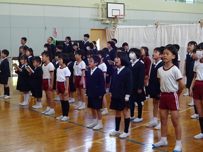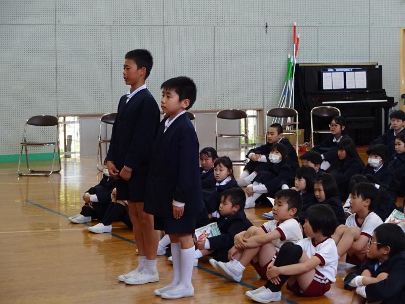 今週、学校田で田植えを行います。本校の田植えは、単なる田植えではありません。田植えという労働に込めた先人の思いを、唄として披露します。4年生はこれまでの伝統を受け継ぎ、「田植え唄」を、5年生は、今年度より新たに、「田打ち唄」を唄います。本日は児童集会で、全校児童にお披露目しました。練習の成果あって、とても上手でした。素敵な感想も出ました。田植え当日が本当に楽しみな出来栄えでした。
