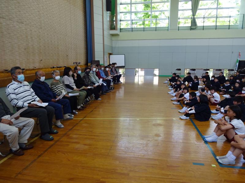 そこで、本日、避難所の方々への感謝を伝える会を開きました。子どもたちからは、感謝の言葉と歌のプレゼントを贈りました。避難所の方々からは、子どもたちの背中を後押しするようなお言葉をいただきました。