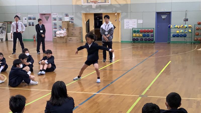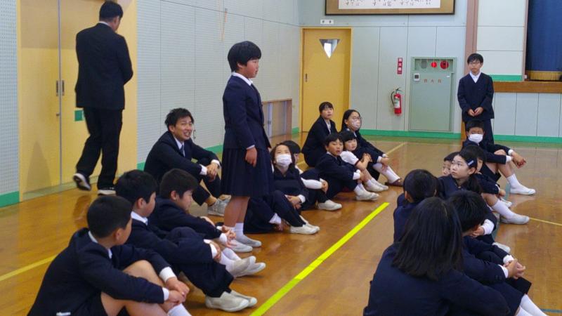 2024年5月21日 11時57分毎年、全校児童で体力テストに取り組んでいます(「直っ子オリンピック」と呼んでいます)。今日は児童集会の場で、幾つかの種目のやり方を説明しました。子供達にもお手本ななってもらいましたが、担当の先生にもやって見せていました(「反復横跳び」は本気モードで)。1年生は勿論のこと、経験したことのある他の学年の児童もテスト(6月開催予定)への思いを新たにしようです。