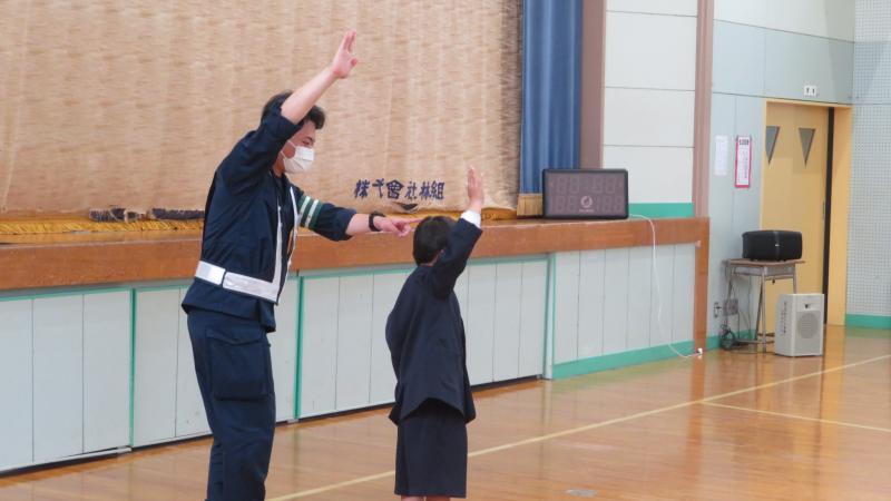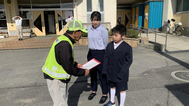 本日、交通安全見守り隊の方々との対面式、そして、珠洲警察署の方を招いての交通安全教室がありました。対面式では、見守り隊の方々が、日頃、どういう思いで見守っているかを話して下さいました。交通安全教室では「安全な歩き方」「安全な自転車の乗り方」「不審者対応」についてお話いただきました。交通安全協会様から、反射材シールもいただきました。安全への意識が一層高まった日となりました。