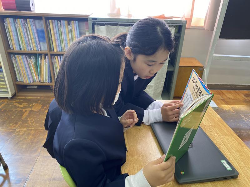 総合的な学習の時間では、SDGsについて学習しています。今日は、17の目標にはどのようなものがあるのか、本やChromebookで調べました。