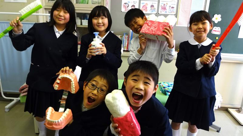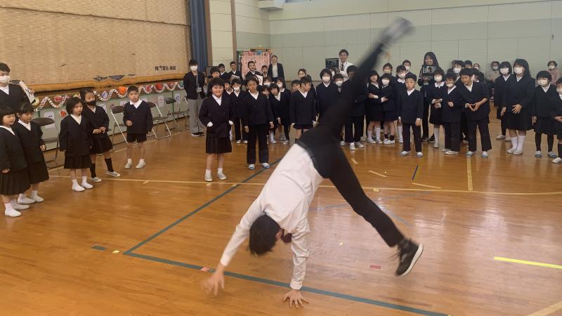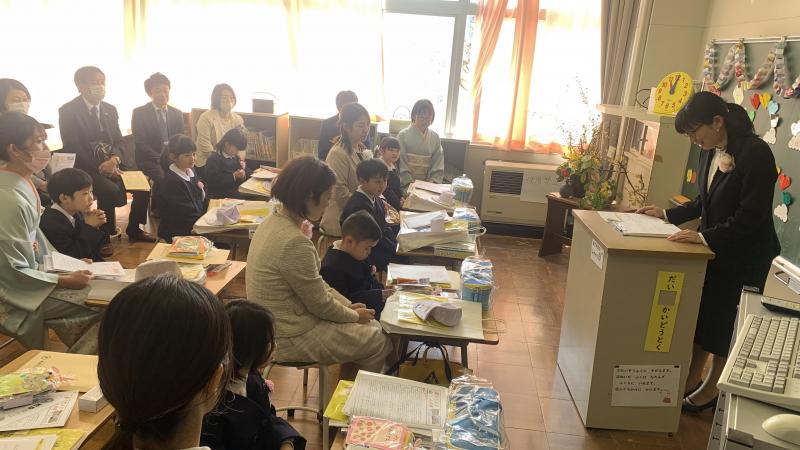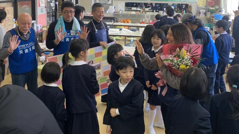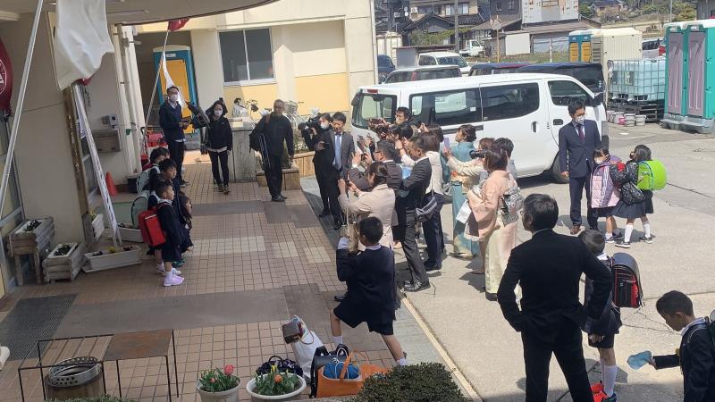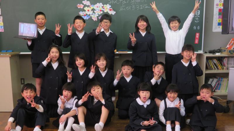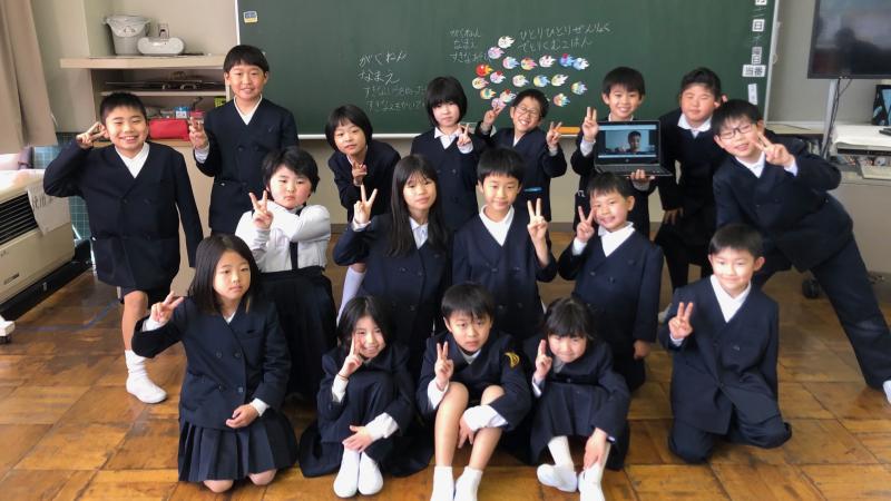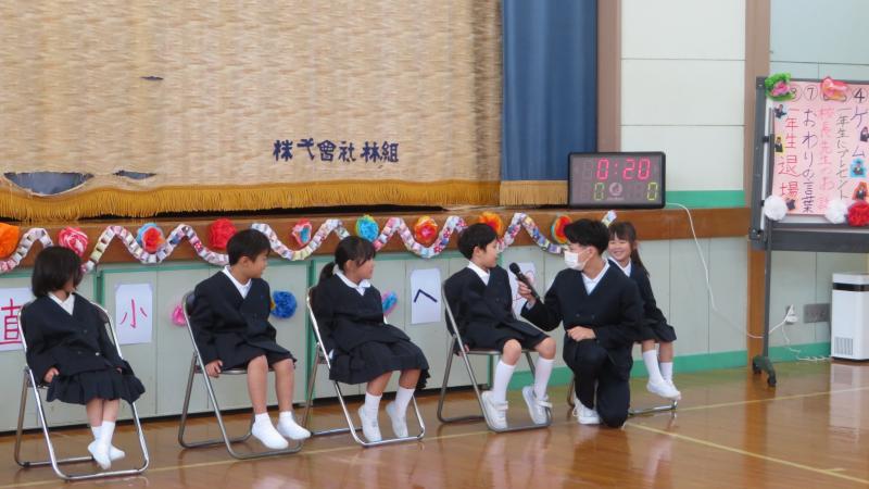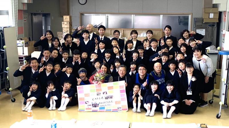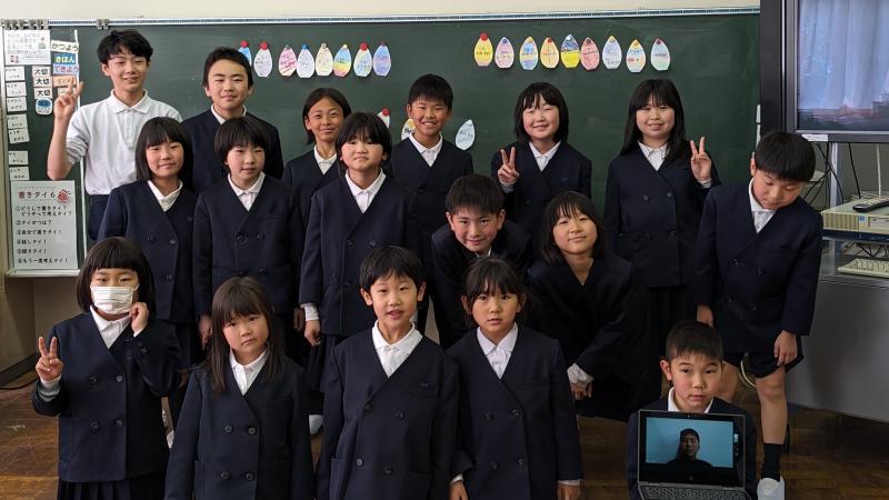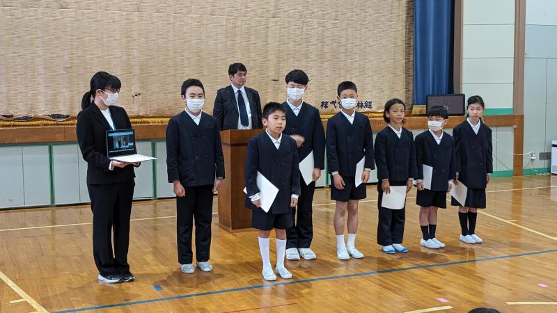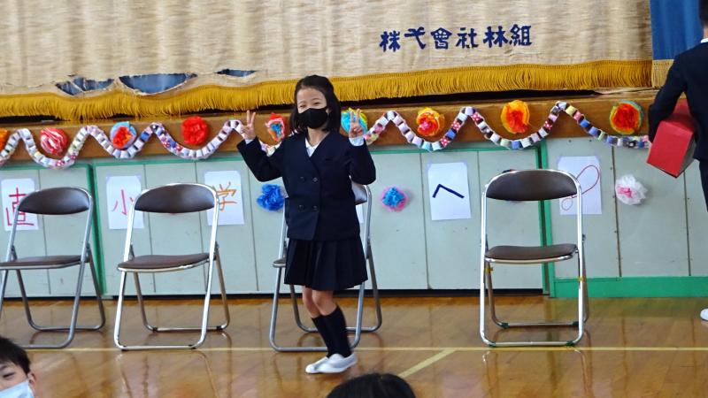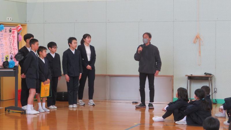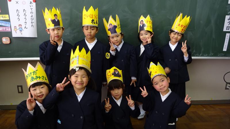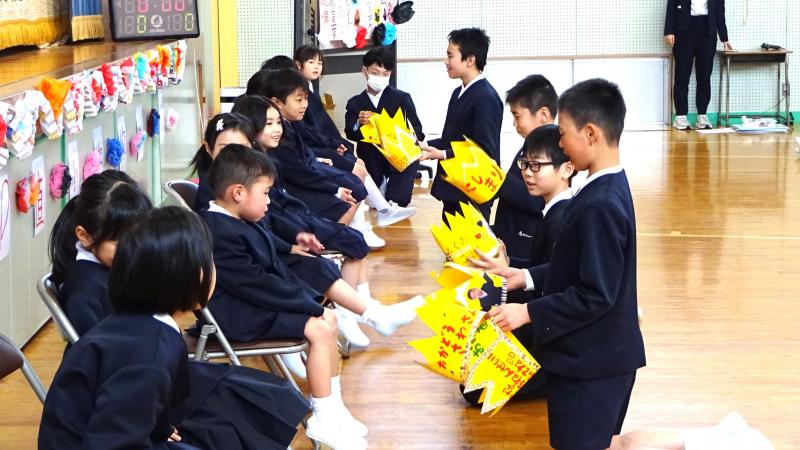 本日、1年生を迎える会が開かれました。6年生がとても頑張って、会を盛り上げてくれました。1年生だけでなく、2~5年生もとても楽しそうでした。1年生へのインタビューあり、ジェスチャーゲーム(答えの一つが「蟹」)あり、〇✖クイズ(クイズの一つが「〇〇先生は側転が出来るか」)あり、1年生へのプレゼント(ネーム入り王冠)ありと、笑顔の絶えない時間となりました。避難所の方にも見てもらうことが出来ました。給食は鮭チラシ、桜ゼリーと春らしいメニュー。こちらも美味しい味に笑顔満開でした。