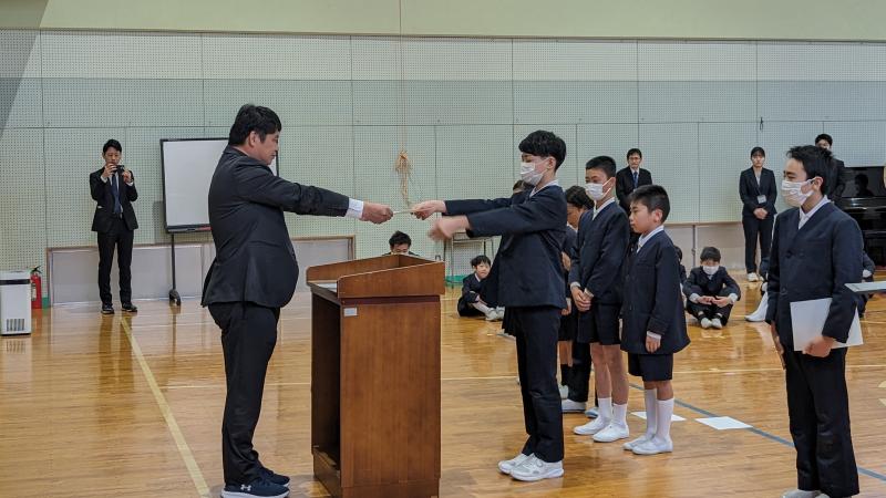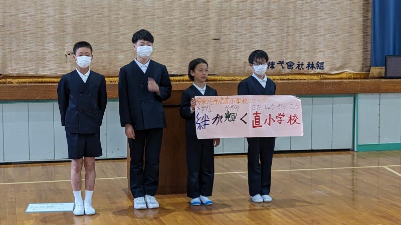 本日、児童委員会委員長、学級代表等への任命式がありました。任命式では、挨拶も、返事も、凜としており、実に素晴らしい態度が見えました。さすが直っ子です。また、今年のスローガンも発表されました。今年は「絆が輝く直小学校」です。大変良きスローガンだと思います。このスローガンのもとでの直っ子の活躍にご期待下さい。