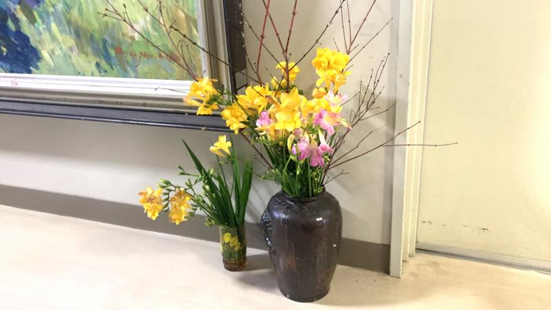 春真っ盛り。花壇のチューリップも、まるで、私の姿を見てと言っているかのように、伸び上がって咲いています。また、玄関や校舎のあちこちに、素敵な花を見ることが出来ます。その花に出会う人達は、きっとすごく癒されることでしょう。これもお世話をしてくださる方がいるおかげ。感謝の心を忘れないようにしたいものです。