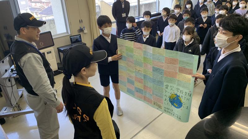 地震発生以来、ずっと本校を支えて下さった、阪神淡路大震災をきっかけに生まれた兵庫県学校支援チーム、アースの皆様が、本日をもって、珠洲市をはなれられました。交代しながらではありましたが、本校の教室に泊まり込みで、学校の日常化に向け、献身的な働きをしていただきました。「恩送り」。この言葉の意味を今一度かみしめたいと思います。アースさん、本当にありがとうございました!