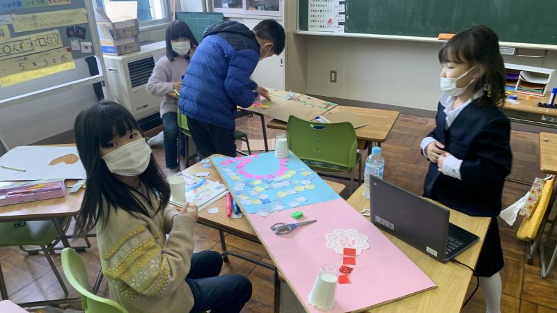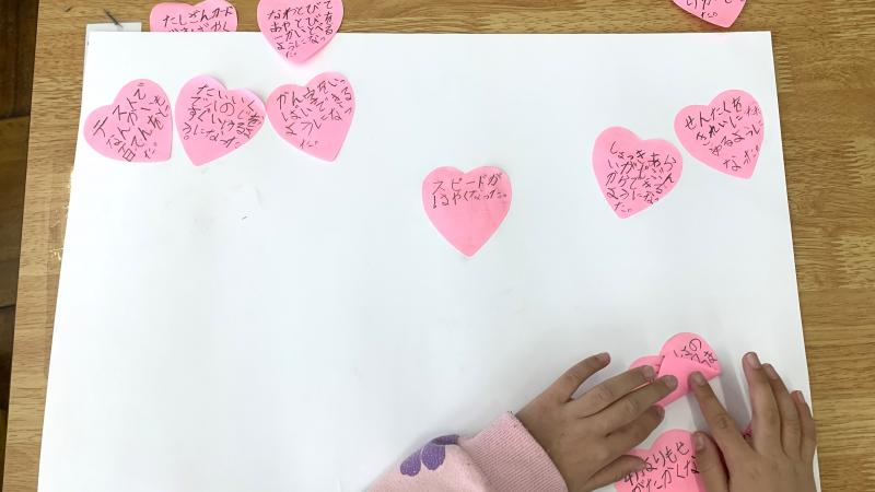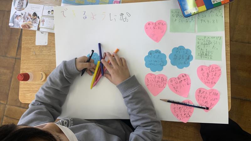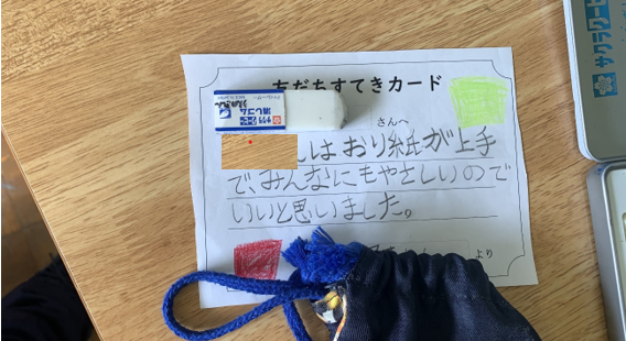 2年生が友だちすてきカードをかいていました。友だち一人一人の「すてきなところ」をカードにかいてあげるのです。沢山沢山素敵なところを見つけていたようです。カードを見たら、きっと心がほっこりすることでしょうね。