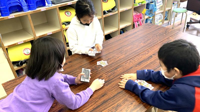 休み時間も子供達は元気です。トランプや、なわとびを使ったジャンプ遊び等、色々工夫しています。それにしても、子供達の笑顔って、本当にいいですね。見ている方も沢山元気をもらえます!