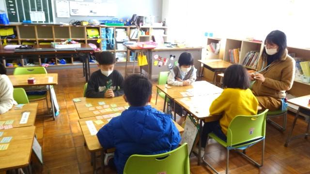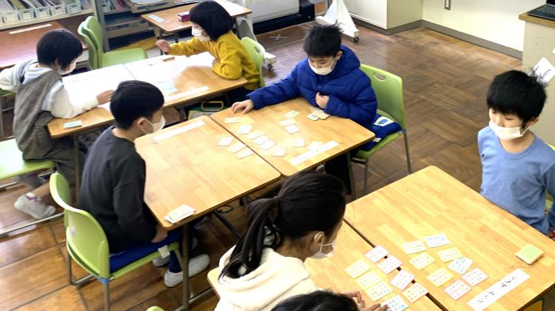 本日百人一首大会を行いました。子供達は、これまで練習した成果を力いっぱい発揮していました。札を見つめる目は真剣そのもの。そして札を取った時の嬉しそうな顔!楽しい楽しいひとときでした。