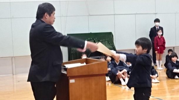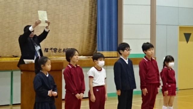 表彰式・納賞式がありました。表彰される児童もそれをしっかり見ている児童も、とても態度が立派でした。1年生もきちんと礼をし、りりしい姿が頼もしかったです。今回は2件の納賞がありました。直っ子の活躍は嬉しい限りです。