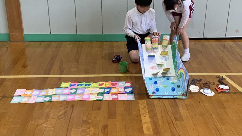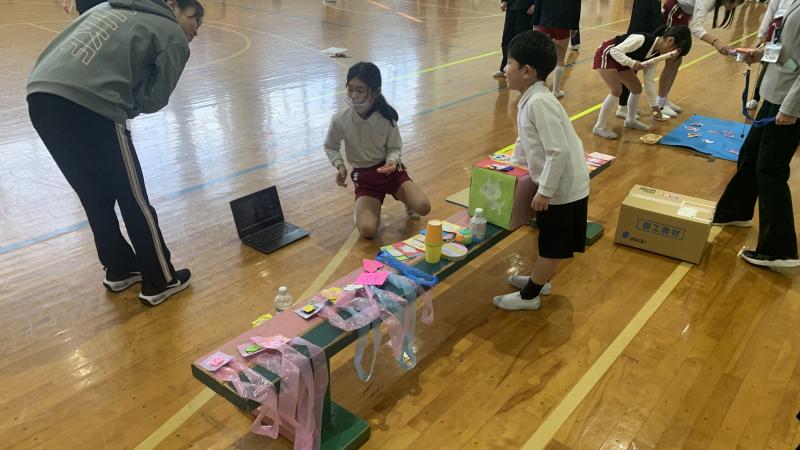 2年生が生活科でつくったおもちゃを使って、お昼休みに全校で楽しみました。体育館は楽しいおもちゃで一杯!さながら、「直っ子おもちゃランド」といったところ。あちこちで大きな歓声が響いていました。楽しい楽しいひとときとなりました。2年生、ありがとう!