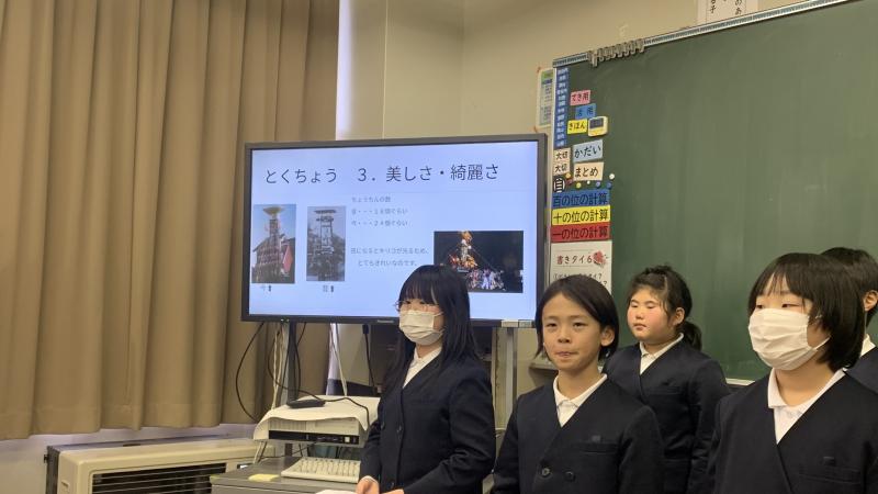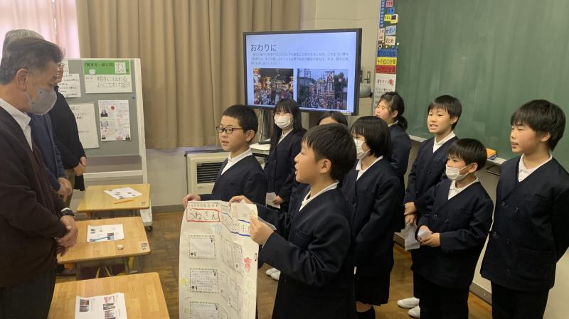 4年生が、総合的な学習で調べた地域の祭りについて、学習に協力して下さった公民館、地域の方、そして校内の先生達を招いて、発表会を行いました。発表内容も態度も立派でした。そして、招いた方々に、発表資料を渡したり、席に案内したり、お見送りをしたりと数々の心遣いがあり、その点でも素晴らしい発表でした。4年生の皆さん、素敵な発表をありがとうございました!