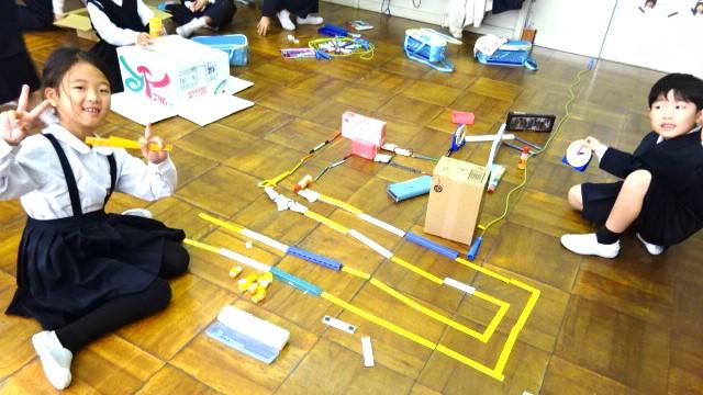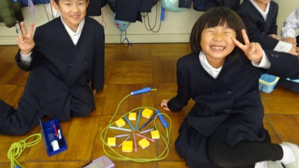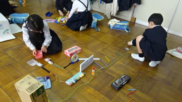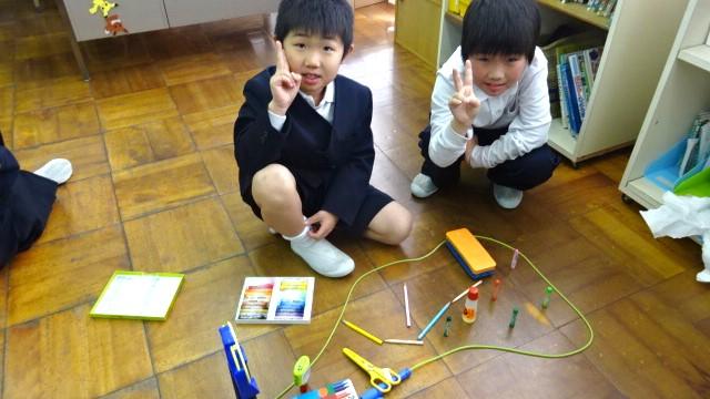 1年生の図工です。身の回りにあるものを並べて楽しむ学習をしました。思い思いに並べてくのですが、並べていくうちにどんどん並べたいことも変わってきます。その変わっていく様が、また楽しいようです。いい笑顔が沢山見られました。