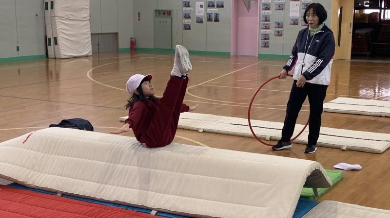 2年生が体育の時間に、マット遊びの発表会をしました。マット遊びとは言いながら、2年生の頑張りぶりは大変なもので、発展技が沢山あり、さながら「体操オリンピック」といったところでした。「逆さ感覚」「回転感覚」等を養う大切な時期でもあります。2年生の素晴らしい技の数々に拍手です!