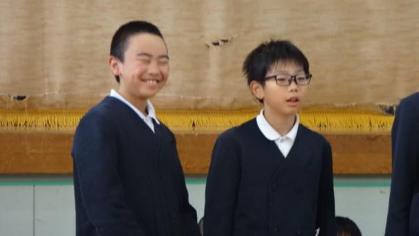 本日児童集会があり、5・6年生が歌の発表をしてくれました。曲名は「スマイルアゲイン」。発表前にミニ演劇で笑顔で歌う意欲を上げてくれました。最初に5・6年生が合唱。次に5・6年生とその他の学年に分かれての合唱でした。直っ子の歌声はいつも本当に素敵です。そして、みんなの笑顔で歌う姿が輝く集会でした。