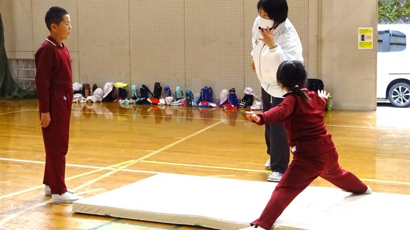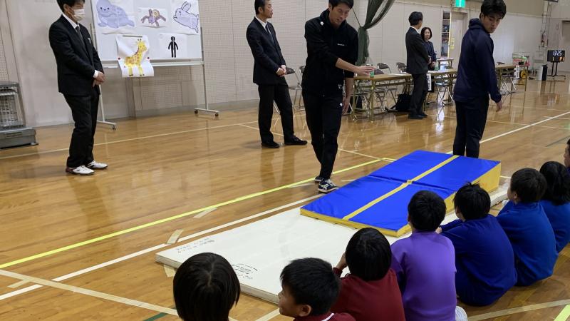 本日、市内の4年生が一堂に集まっての器械運動交歓会(マット運動)がありました。これまでの練習の成果を発揮して、皆頑張っていました。他校の児童も含め、みんなの前で演技するのは緊張感もありますが、よき刺激にもなります。他校の児童とのふれあいも、とても楽しそうでした。大会後、充実感に溢れた子ども達の笑顔を見ることが出来ました。