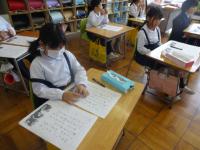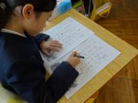 2年生は、書写の時間に硬筆をしました。どの子も1年生のころに比べると字がとてもきれいになっています。一筆、一筆集中して、ていねに仕上げました。どの作品も子ども習字展に選ばれそうですね。