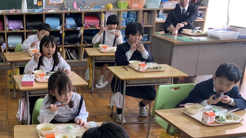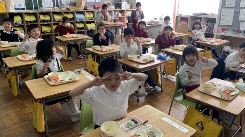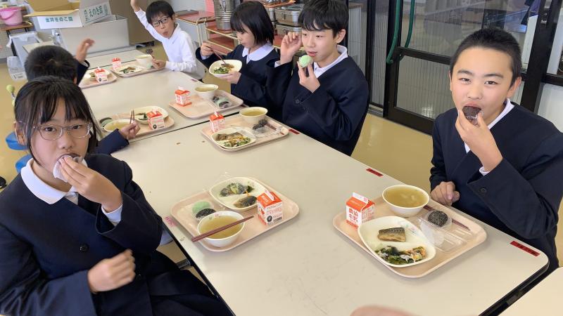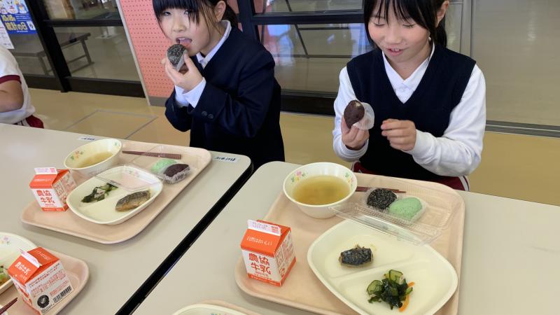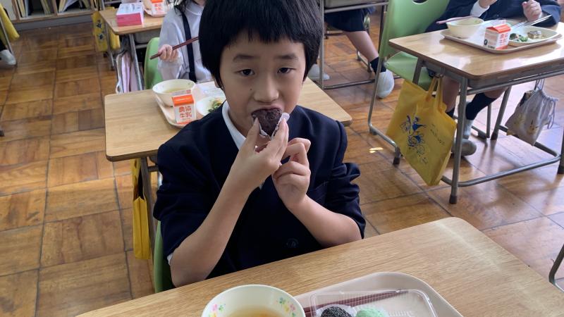 本日、おはぎ給食がありました。皆、大喜びでした。お世話になった方にも配りました。体育館では、おはぎについてのクイズもありました。大変盛り上がりました。美味しくて、嬉しい、楽しいおはぎ給食でした。