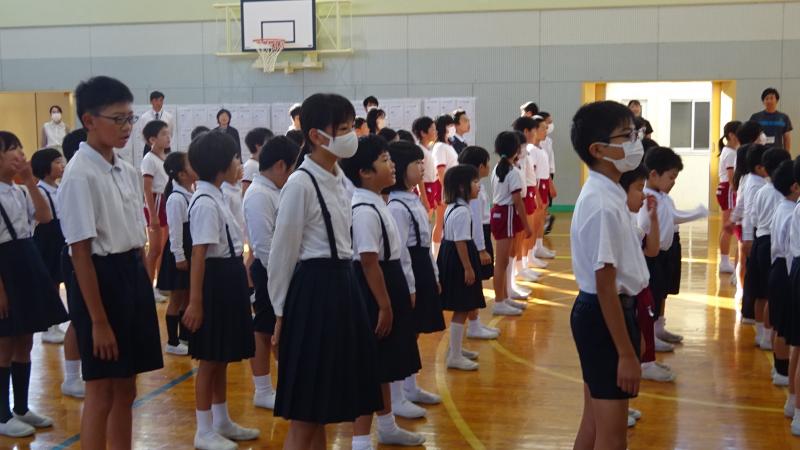 2023年10月3日 16時31分本日全校朝会を行いました。本日も元気な校歌が聞けました。校長先生からは4つのパワーの話が出ました。「走るパワー」「あいさつパワー」「勉強パワー」「わすれないパワー」です。どのパワーも一生懸命続けることで力が高まるということでした。今年度も10月に入りました。これからも沢山のパワーを高めたり身に付けたりしてほしいです。