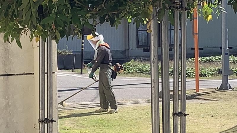 2023年10月4日 17時54分本日、校務員さん方の共同作業ということで、運動場の草刈りをしていただきました。大変綺麗に除草していただいて、とても走りやすくなりました。折しも持久走大会への練習が始まっており、とても有難いです。気持ちのいい場所で走れば、それだけでタイムも上がりそうです。