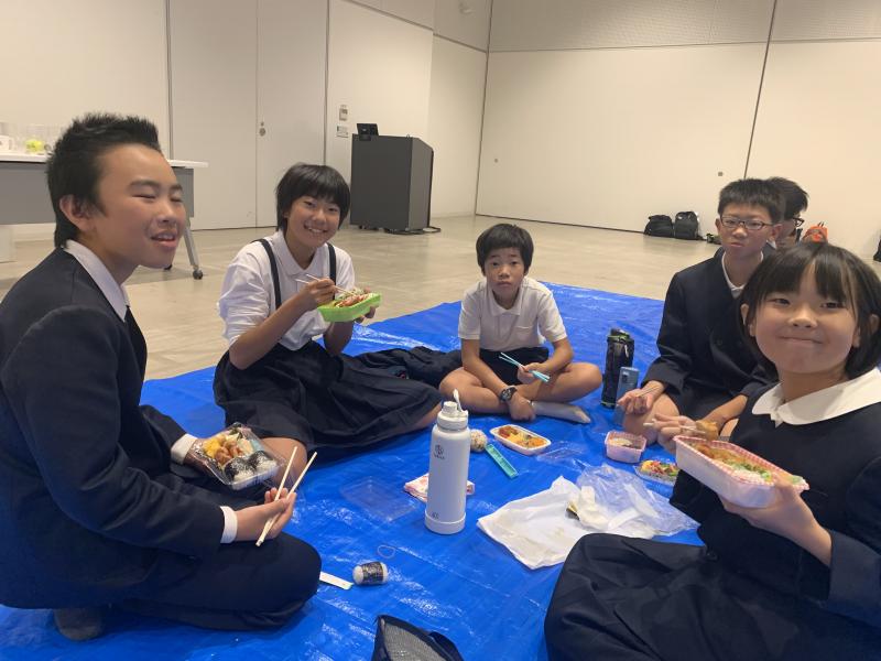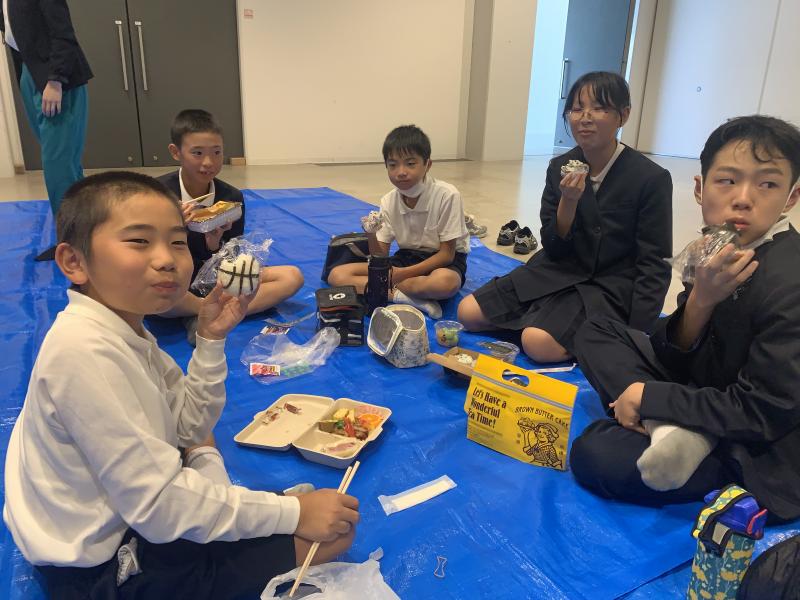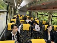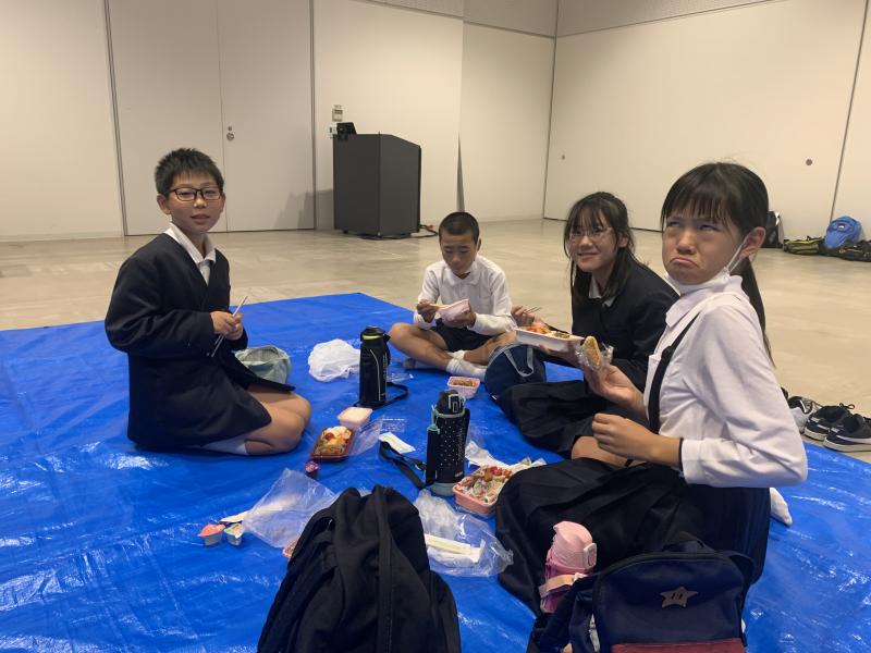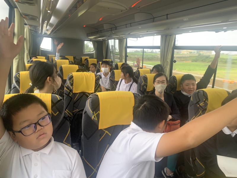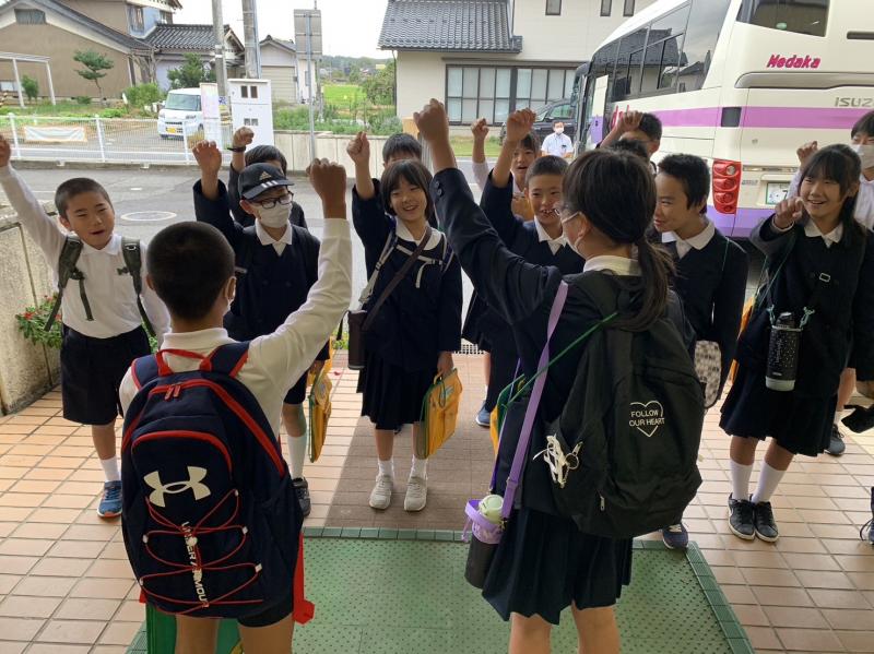2023年10月5日 07時33分朝早い出発だったので、バスの中で一緒に行く上戸小の児童と朝の会をしました。当然、みんな大元気です!