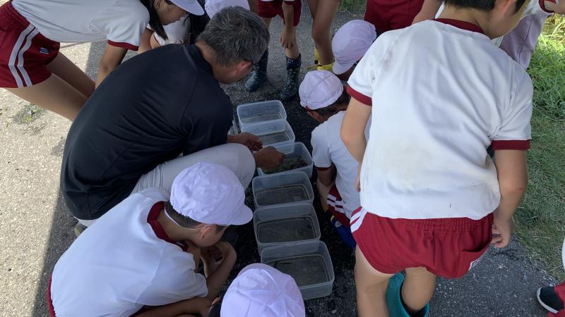 3年生が2回目の生き物観察会に行きました。前回6月は、田植え時期でしたが、今回9月は稲刈り時期です。観察できる生き物も変化しています。直播田と通常田では田の様子も大きく違います(直播田はまだ水を張っています)。子供達は歓声をあげながら生き物をさがしていました。これから観察会を通して感じた?について学んでいきます。その中でまた様々な発見があることでしょう。楽しみです。