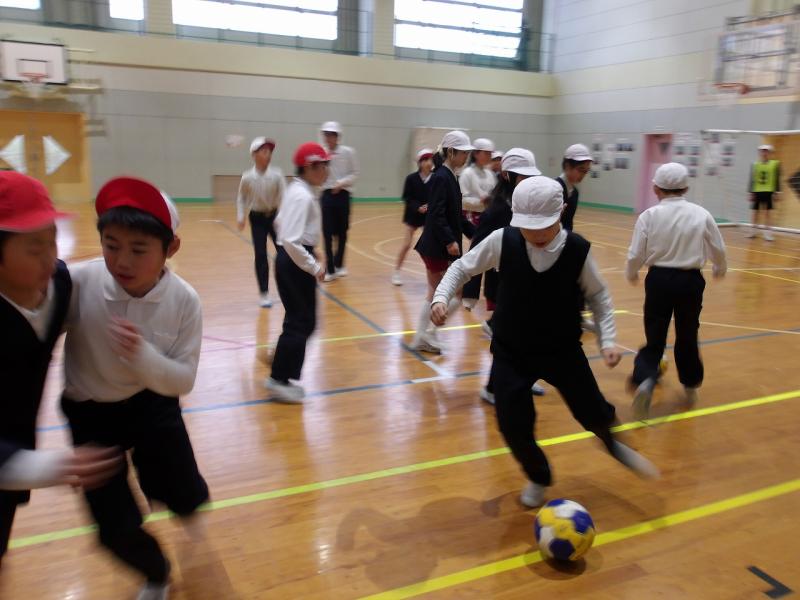 今日は直小学校全児童が、みんなで遊ぶ日でした。体育館に全員集合して、先生達も入って、室内サッカーで大盛り上がりでした!ファインプレーの連続!シュートが入った瞬間は大歓声!外はめっきり寒くなりましたが、体育館は熱気に包まれていました。