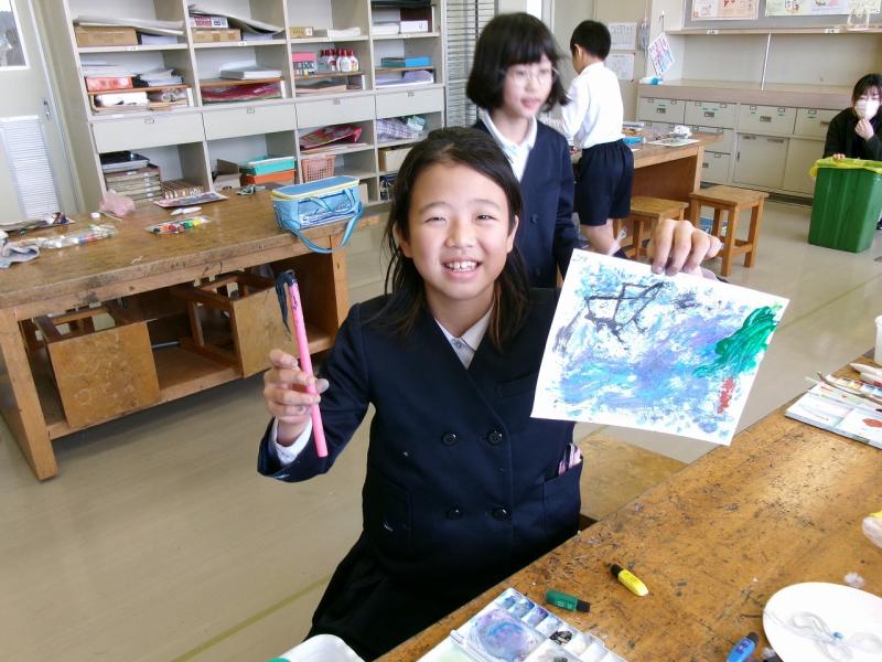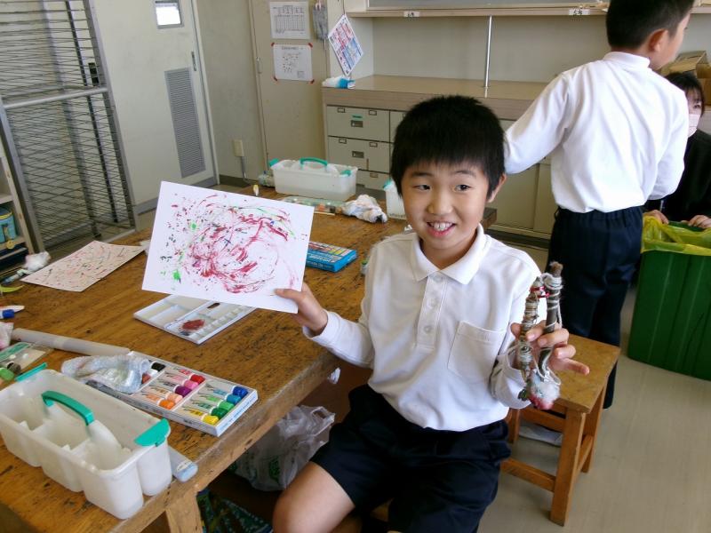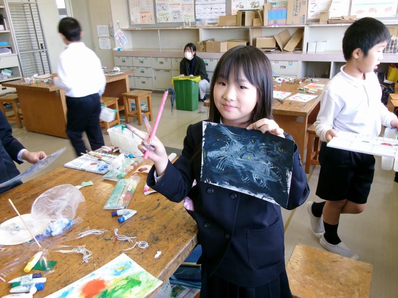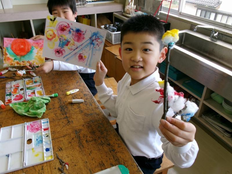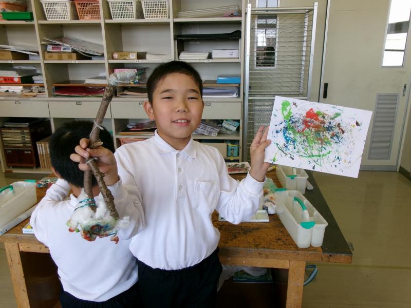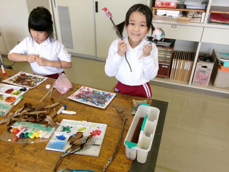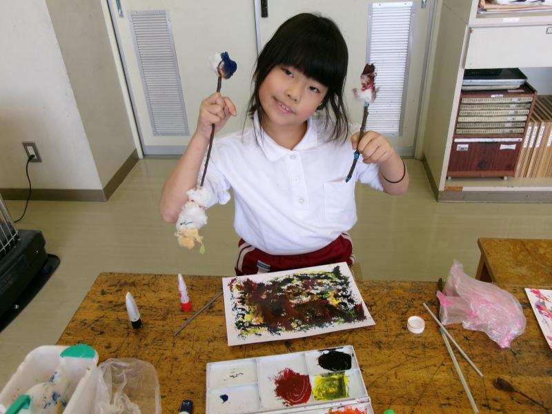 3年生が図工で、様々な道具を使って、様々な表現を楽しみました。道具が違うと出来る表現も本当に多種多様です。子供達は、その表現の豊かさを心ゆくまで味わっていました。