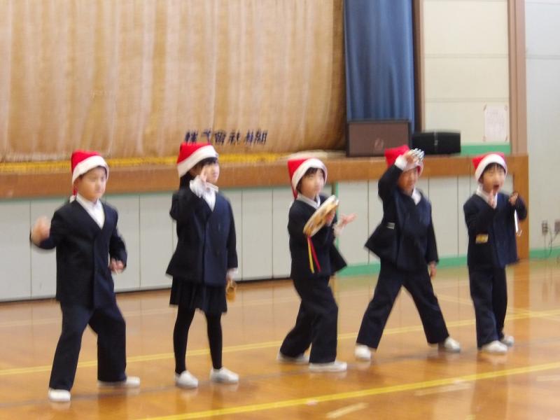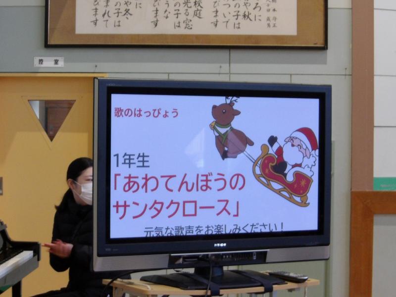 2025年12月23日 14時12分本日、児童集会で、2年生によるウェルカムミュージック(合奏「子犬のマーチ」)の後、1年生がクリスマスミニコンサートを行ってくれました。5人とは思えないほど大きな声で、明るく、ハツラツと、体全体を使って「あわてんぼうのサンタクロース」を歌ってくれて、体育館中が一気に楽しい雰囲気に包まれました。保護者の方、地域の方も見にきてくださり、素敵だったという感想も伝えてくれました。一足先に直小はクリスマスを迎えました!
