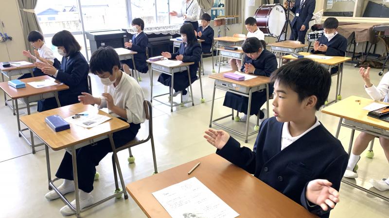 本日、4年生を対象とした田植え唄練習会がありました。例年、池谷内先生においでいただき、素晴らしい唄を聞かせてもらい、練習に励んでいます。今年も、素敵な練習会となりました。田植え唄の説明も聞き、4年生はとても納得していました。今回を含めて計3回。そして田植え本番で、披露する予定です。楽しみです!