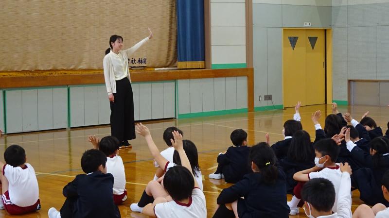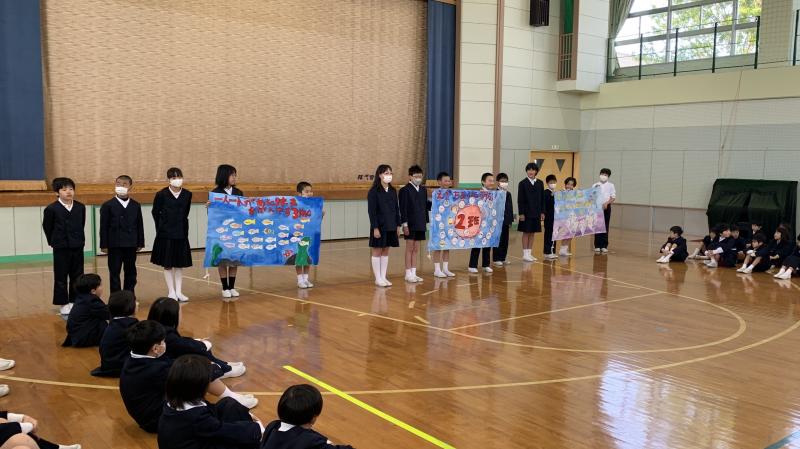 本日児童集会がありました。明日からゴールデンウィーク後半とうことで、まず、生徒指導担当から、休み中の安全な生活について話がありました。皆真剣に聞いていました。続いて、運動会についての話がありました。運動会の目的は「体力アップ」「縦割り班のみんなともっと仲良く」等の話があり、子供達は皆納得していました。また、運動会ダンスの説明もありました。5・6年生が既にマスターし、披露してくれました。今年もとっても楽しそうです!楽しみです!