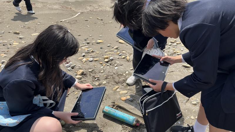 SDGs学習の一環として、総合的な学習の時間に、5・6年生が、浜辺に行って、漂着物を調べてきました。「これは、海のお魚さんに謝らないといけないですね。」 こんな感想を漏らした児童もいました。かけがえのない自然を未来に残していくために、直小学校は今年度も学びを進めていきます。