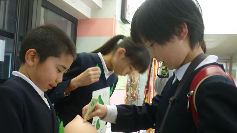 今朝、運営委員会が児童玄関で、緑の羽根募金活動を行っていました。今年から、募金箱がかわいいキャラクター風になっていて、募金を入れる児童も楽しそうでした。募金活動は、明日も行います。いろんなところで、児童会運営委員会、頑張っています。