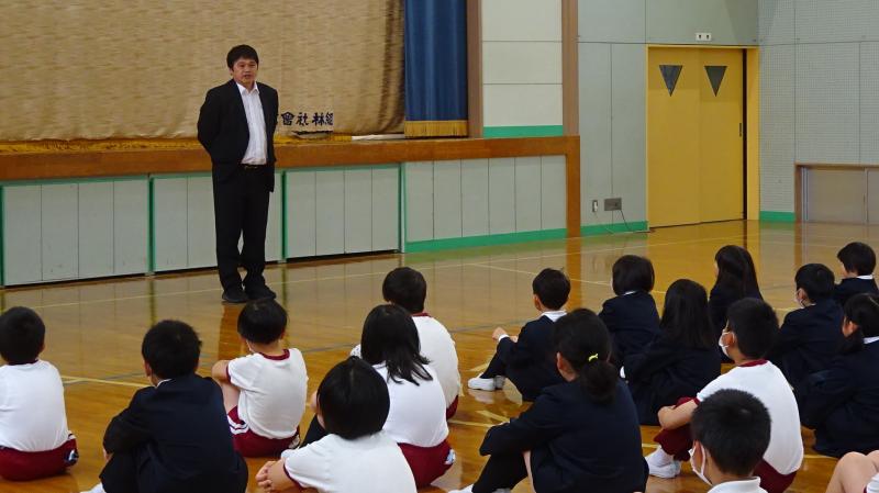 臨時で全校朝会を行いました。みんなの元気な顔が見れて嬉しかったこと、地域、家族の方々が頑張ってくれている、児童のみんなも、これからも元気に頑張っていこうということ、地震発生時の安全行動、不安なことがあったら相談してほしいこと等が話されました。皆、地震発生後、大変な思いをしてきたはず。でも、運動会練習も始まり、今日も1日、直小学校児童はしっかり前を向いて頑張っていました!